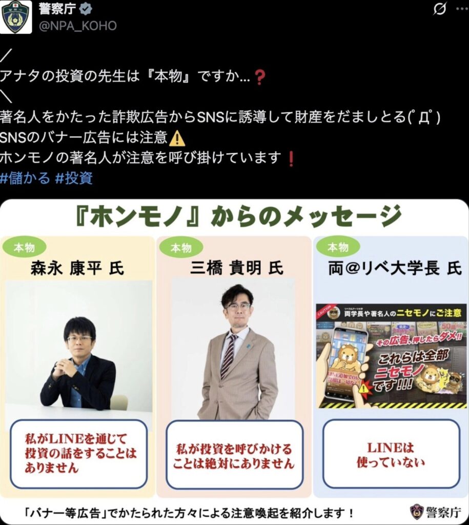 • 詐欺電話?には即応せず。公式HPなどから事実・対応確認を